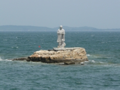 大井の「上陸大師」弘法大師が舟でここに上陸したことに由来して、海上の岩に弘法大師像が建てられています。 |