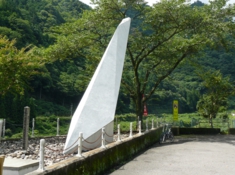 上麻生ダムの下流で昭和43年に起きたバス転落事故の慰霊碑「天心白菊の塔」死者104名という日本のバス事故史上最悪の事故だった。捜索にあたり上麻生ダムの水量をゼロにするという緊急作戦が行われたことも有名。 |
