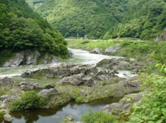 美しい渓谷が続く飛騨川。このあたり全体を「飛水峡」といいます。 |