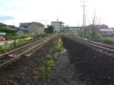 美濃太田駅に近づいてきました。これは複線を撮ったように見えますが、太多(たいた)線と高山本線の2つの単線が並んだところです。 |