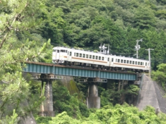 線路と飛騨川にそって走るので、鉄橋と列車という楽しい風景にも出会えます。 |