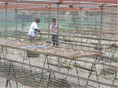 魚を干すのは早朝から午前中までの仕事。今日は少し早く到着したので、干物を作っている風景を見ることができました。 |