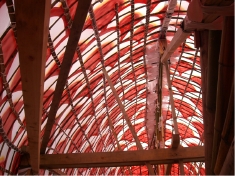 中を見せてもらうと、なんと木と竹だけでできています。中から見ても迫力があります。 |