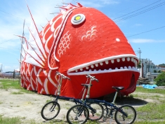 鯛みこし3匹目。こちらは電飾されていて、当日までのPRにも使われていました。 |