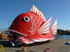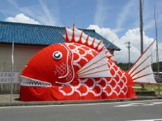 鯛まつりのみこし1匹目。見ての通り、大きくて迫力満点。そしてちょっとお茶目! |