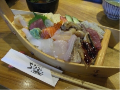 昼食は「ちなみ」の舟盛りちらしずし1800円。色々な魚や貝がてんこ盛りでとても美味しかったです。 |