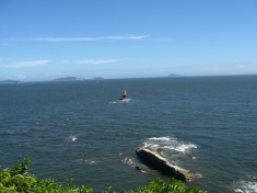 知多半島の先端は小高い山になっていて、そこに羽豆神社と展望台があります。これは展望台から見た風景です。海の向こうに渥美半島の先っぽ、伊良湖岬が見えます。 |