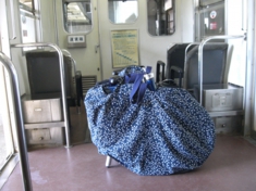 一人掛けの席が両側に並びます。細い電車ならではの構造になっています。速度はゆっくりですが、結構揺れました。 |