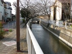 庄内用水の両側は閑静な住宅地です。そして遊歩道(庄内用水緑道)や所々に公園があり、憩いの場になっているようです。そんなところですからやはり水が流れていたほうがいいでよね。春は桜が咲いてきれいでしょうね。 |
