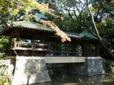 揚輝荘の庭にある「白雲橋」紅葉には少し早かったみたい。 |