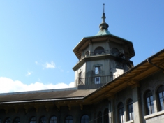 「揚輝荘」は、松坂屋の初代社長がつくった別邸です。今は名古屋市に寄贈されていて、一部が無料公開されていました。写真は「伴華楼」という建物で、煙突の模様がお洒落です。 |