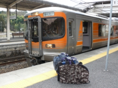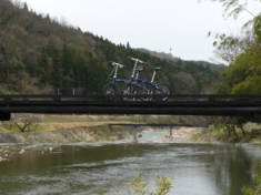 ☝輪行してきた車両と記念撮影 ☞先頭車両に自転車を置きます |
