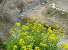 ☝土岐川(庄内川)の上流部。菜の花がキレイ! ☞中央線が単線だった頃の架橋の跡。左に見えるのが今の架橋 |