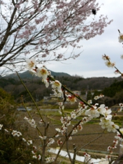 ☝街道は県道になっていますが、走りやすい道です ☜梅と桜が一緒に咲いています。特別な風景です |