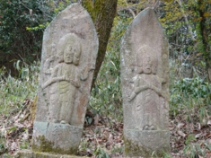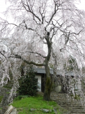 ☝二体お揃いの馬頭観音。昔から街道を見守ってきたのでしょう ☞見事な枝垂れ桜です。民家の桜のようですが、多くの人が写真を撮りに来ていました |