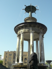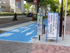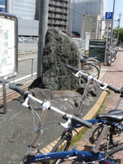 ☝鶴舞公園周辺の自転車道は、なんと対面通行可でした。この3月に完成したばかり ☞鶴舞公園の噴水塔。明治43年開催のイベントのシンボルとして建てられました(今のは復元)。和洋折衷の面白いデザインです |