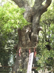 ☝城山八幡宮は城跡だけあって、堀の跡が見られます。 ☞城山八幡宮の「連理木」アベマキの木で、地上3メートルで2つに分かれ、6メートルのところでまた1つに合わさっています。そのため縁結びのご神木となっています。 |