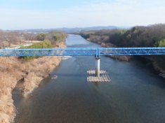 平成記念橋から見た矢作川。矢作川って結構キレイな川ですよ。正面の青い配管は上水道管です。 |