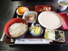 お昼は、料理旅館「安城館」で自然薯定食(うなぎ付き)をいただきました。自然薯(とろろ汁)もうなぎもおいしかったですよ。この旅館100年以上の歴史があるんですって。 |
