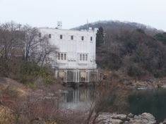 今も動いている「越戸発電所」建物は昭和4年建設当時のままの西洋風の様式を残しています。 |