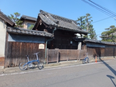 清洲宿本陣跡。濃尾地震で建物が倒壊し、残された正門が縮小されて再建されたそうです。縮小されたといっても立派な門です。 |