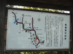 北市場美濃路公園にある美濃路の由来についての看板。「美濃路は天正年間(今から約四百年前)織田信雄が幅5間(九m)の道路に改修させたのが始まりで、東海道と中山道を結ぶ重要な脇街道であった。」関ヶ原の戦いの際、家康が凱旋した道でもあるそうです。 |