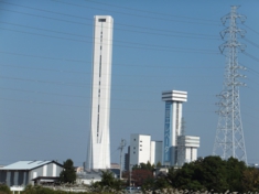 エレベータ試験塔。高さ173mは建設当時、世界一高い試験塔だったそうです。(今は3位)ちなみに高さの173.0は、「いなざわ」の語呂合わせだそうです。 |
