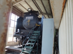 JR稲沢駅近くの宮浦公園にあるSL保存車両。細かい金網に囲われていて良くみえません。金網の隙間から写真を撮りました。 |