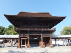 いよいよ境内へ。この楼門は足利初期(約550年前)に建てられたもの。柱を近くで見ると古さを感じます。 |