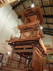 犬山祭では13台の車山(やま)がくり出しますが、その内の1台を特別に(?)見せていただきました。枠組みだけですが、10メートル近い高さは圧巻です。お祭りの時にも見に来なければ。 |