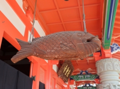 先聖寺にあった木魚の原型。鯉がくわえている玉は、煩悩だそうです。木魚を叩いて、煩悩を吐き出させるという意味だそうですよ。 |