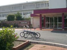休暇村に戻ると、翌日のトライアスロンに参加する人でごったがえしていました。玄関には多くの自転車が止まっています。 |