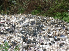 ここはアサリ&大アサリ(別名ウチムラサキ)が名物。これは現代の貝塚。 |