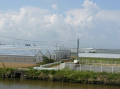 海から目を陸の方に向けると、農業用ハウスが立ち並ぶ風景になります。愛知県というと工業県のイメージがありますが、有数の農業県でもあります。 |