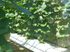 特産品のメロン。一つの株に一つしかメロンが付いていません。摘果した小さいメロンは漬け物になって売られていました。 |
