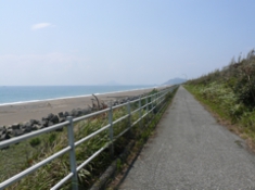 太平洋ときれいな砂浜を左手にサイクリングロードが一直線に続きます。 |