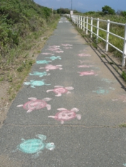 かわいい子ガメの絵がサイクリングロードに書かれていました。 |