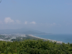 峠からの静岡方向の眺め。これまで走ってきた海岸線が見られます。 |