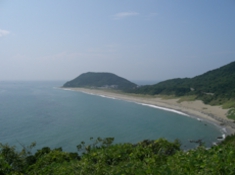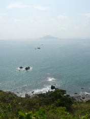 峠からの「伊良湖岬」の眺め。岬を回って少しすると出発点の休暇村に戻ります。 |