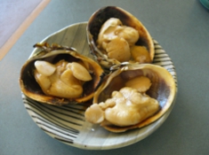 「恋路ヶ浜」の食堂で、大アサリをいただきました。柔らかくて、磯の香りがして、とてもおいしいかったです。 |