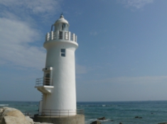 伊良湖岬の灯台。今は使われていませんが、観光用としてきれいに保存されています。美しい海に灯台がよく似合います。 |