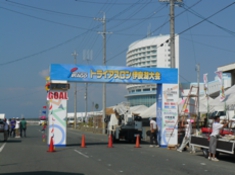 翌日のトライアスロンのゴールです。900人以上の参加者がこのゴールを目指します。 |