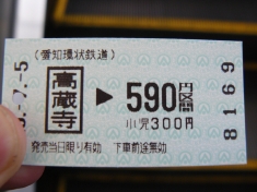 高蔵寺駅で愛知環状鉄道に乗り換え。JRとホームが同じですが、切符は通しで購入できません。切符が見たかったので、一回改札を出て、切符を購入。券売機も別々でした。 |
