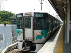 大門駅に列車が到着。これに乗って帰りました。 |