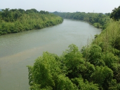 その横を流れる矢作川は、都市を流れる川にしては珍しく、緑に覆われた自然豊かな川でした。 |