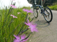 河原では、ナデシコ(カワラナデシコ)が満開でした。こんなにたくさんのナデシコを見たのは初めて。また秋の七草がこんな時期に咲くのを知ってびっくりしました。 |