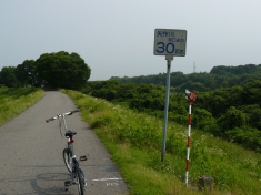岡崎市に入ると堤防沿いの道には車止めがあり、自転車は快適に走ることができます。 |